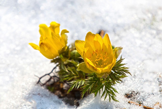 「花をのみ 待つらん人に 山里の 雪間の草の 春を見せばや」藤原 家隆